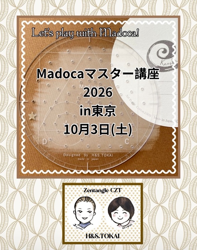 H&S.TOKAI オリジナル商品 アングル&サークルメーカー『Madoca』のマスター講座2026を開講いたします❣️ 去年、好評をいただいた講座の第2段です。 商品添付の説明書や、マドカドリルの説明書を見ても… 『自分だけじゃなんか分かりにくいけど、一緒にやればよく分かる❣️』 講座では、マドカ・マドカドリルの説明書を基に、マドカが分かるまで手取り足取り細かく深く、徹底解説いたします♪ 2026年は、東京のみの開催となります。 Madocaをお持ちの方にも、初めましての方にも、分かりやすく説明していきますので、安心してご参加いただけます。 【講座内容】 ・マドカの仕組み ・マドカの使い方 ・マドカドリルでの練習 ・質疑応答タイム ・Kilocaを使ってカットした紙で2枚仕上げます。 ・2枚タイルを仕上げます。 ※Madoca・Kilocaをお持ちでない方は、当日でもご購入いただけます。 【日時】 2026年10月3日(日) 11時~17時 約6時間(休憩込み) ♫休憩時のお菓子付き♫ 【場所】 東京(神田駅 徒歩圏内) 【お申込み期限】 開催日の前日まで 【その他】 持ちもの・詳しい場所のURL等、開催日の一週間まえ前後にメールにてお知らせいたします。 【キャンセルについて】 お申込み後のキャンセルについては、返金はできませんのでご注意ください。 講座で使用した資料・タイル等の送付にて代えさせていただきますのでご了承の程よろしくお願いします。